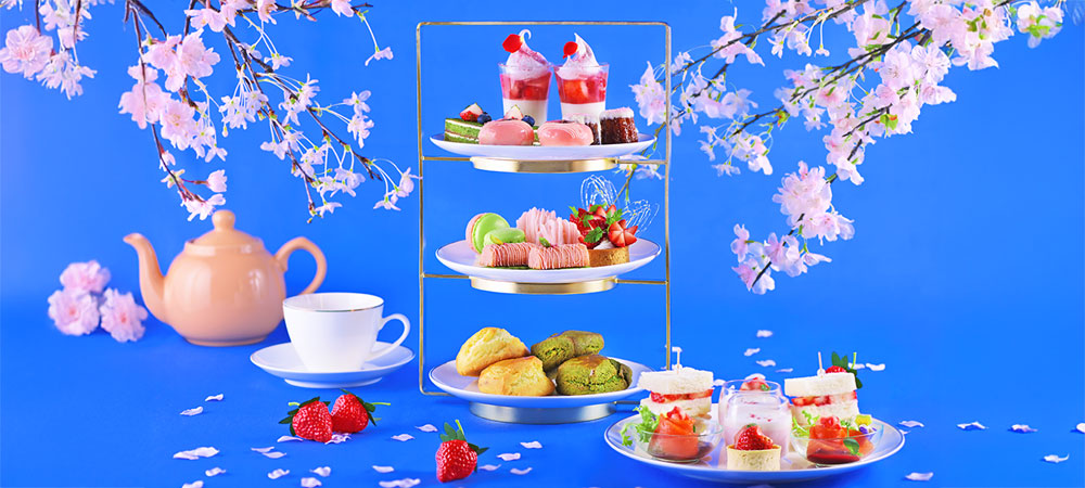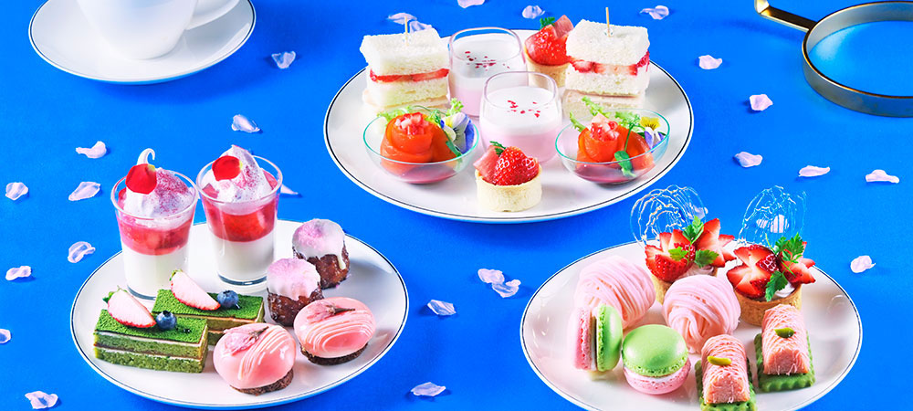甘酸っぱい苺を贅沢に使ったしっとりスイーツと、色鮮やかなセイボリーが春の午後を彩ります。ひと口ごとに広がる春の香とやわらかな色どりは、そっと季節を告げる特別なひととき。ゆったり流れる時間に身をゆだね、苺とさくらの彩りを存分に楽しむ贅沢なティータイムを。