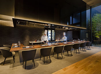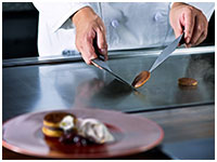 瓊鶴海では鉄板焼き、寿司、天ぷらをひとつの空間でおたのしみいただけます。