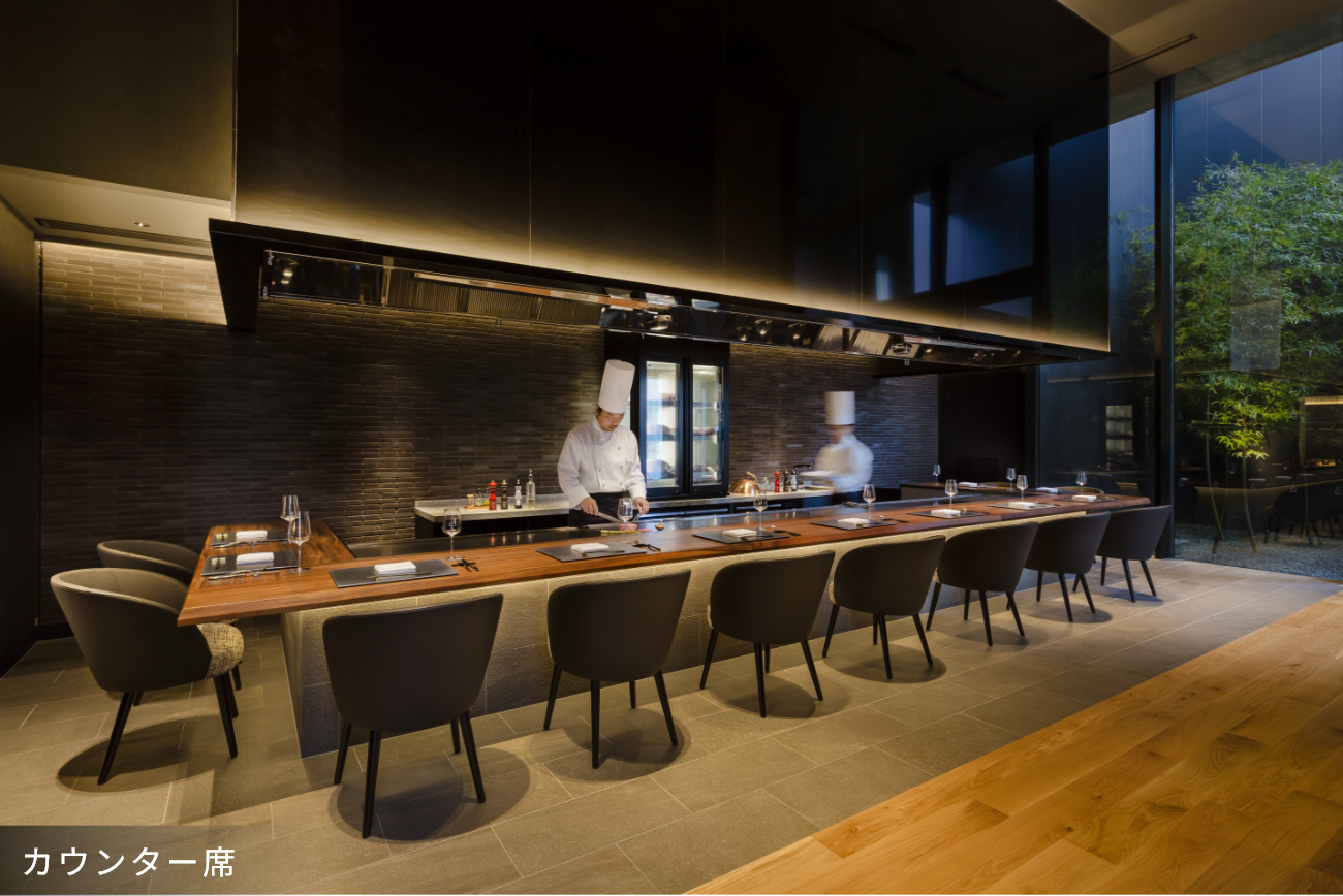 心地良い賑わいを感じられるカウンター席では、シェフの精緻で躍動感あふれるパフォーマンスを。