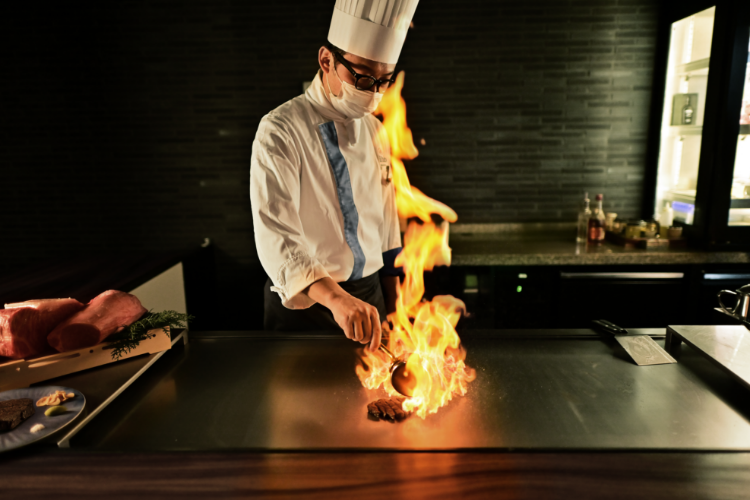 コースの締めくくりにも、鉄板焼きならではの演出を。